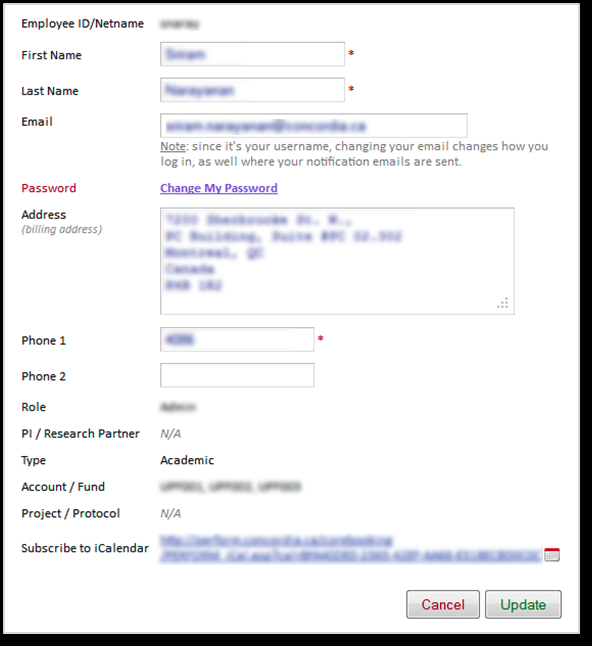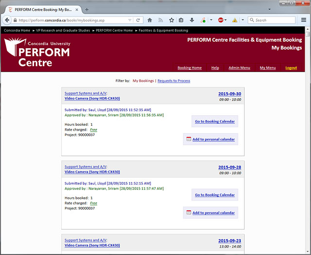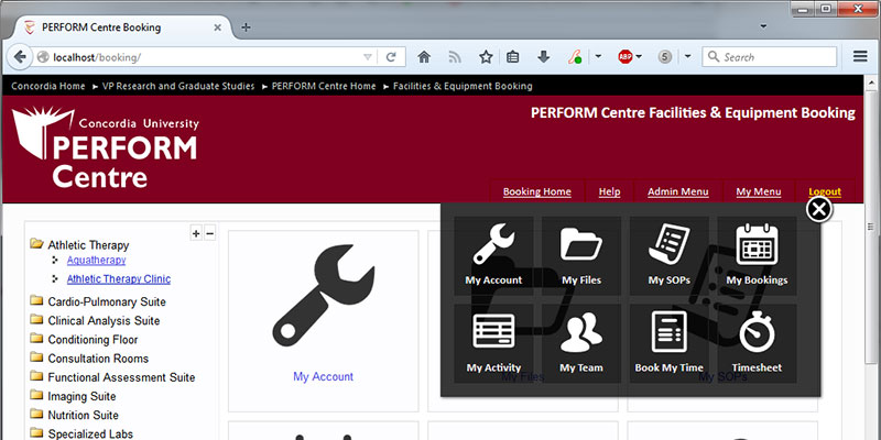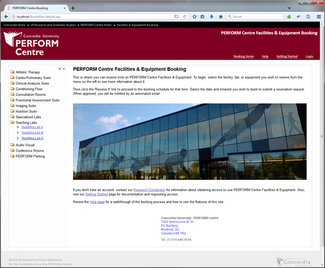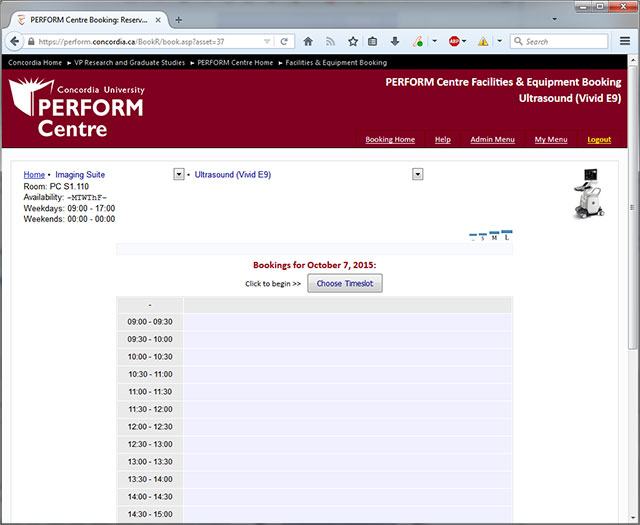 | Core Facilities Booking website: | https://schoolofhealth.concordia.ca/BookR |