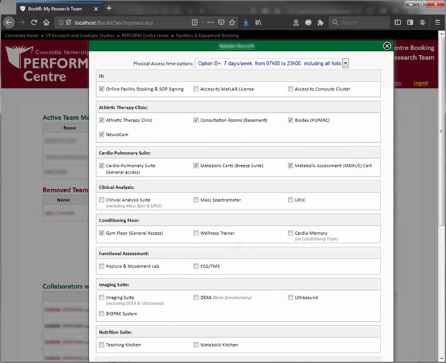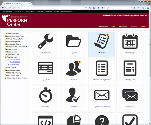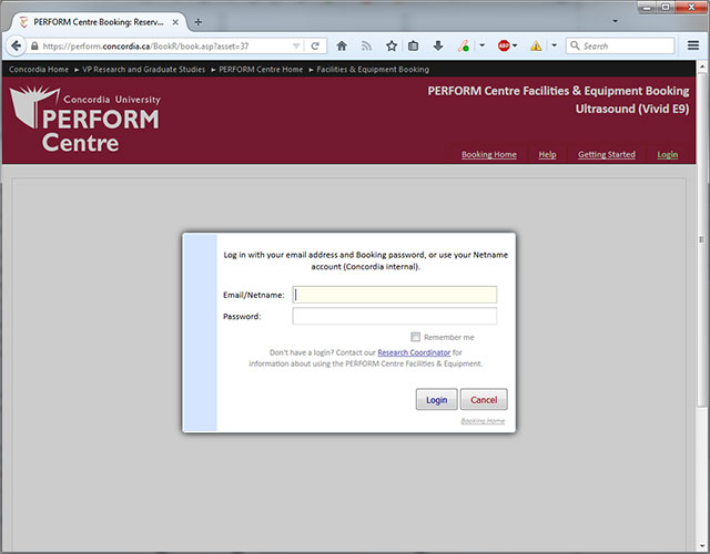 In order to access the Booking website, an account on the system will be required. Accounts are only created for people who are approved to do research at the School of Health. The Primary Investigator can request accounts & access to various systems at the School of Health (including the booking system and building access cards) for themselves and their research assistants through the SOH “Getting Started” site (https://schoolofhealth.concordia.ca/GettingStarted) under Application Documents and Forms.