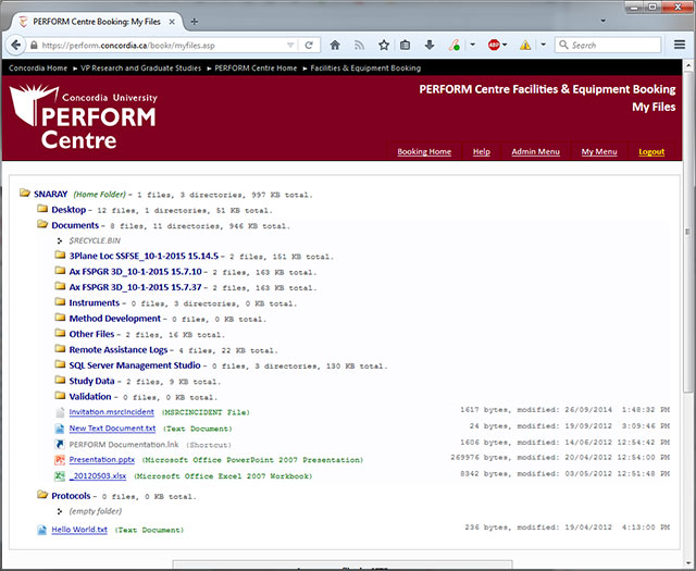 Any files you've saved to your private folder on the R: drive while at the School of Health will be accessible to you online through this page. Note that if you also have other shares on our server (ie. a group share) those files will not be accessible here.