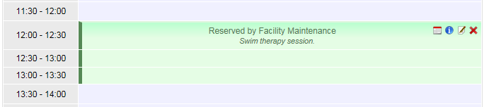 - Release the mouse button while over the time-slot that the reservation will end in (inclusive)